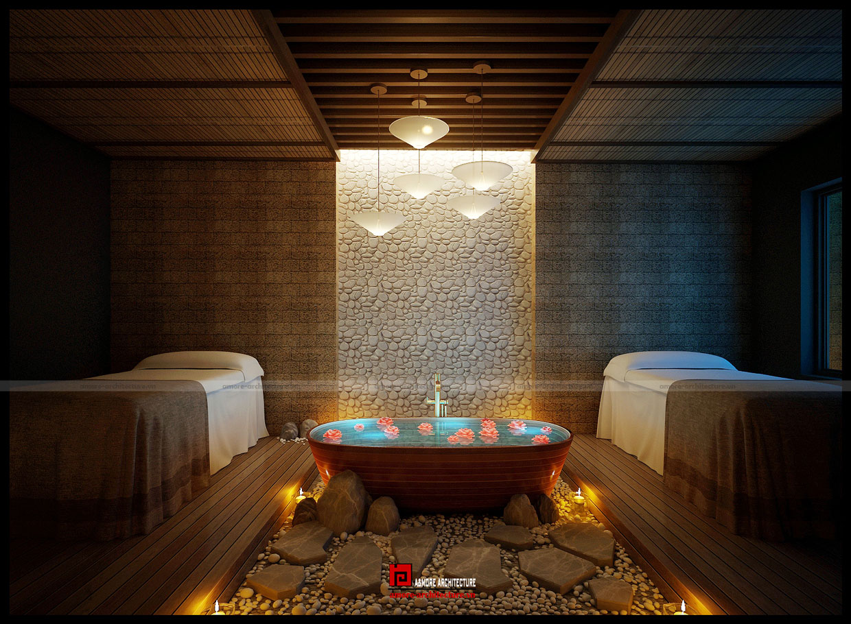 Thi công nội thất spa trong resort thường gắn liền với các khu du lịch nghỉ dưỡng. Với nhiều loại hình dịch vụ chăm sóc và thư giãn khác nhau. Vì thế, các thiết kế spa cho resort cũng đòi hỏi sự phức tạp hơn. Trong đó là các khu chức năng cao cấp như: khu xông hơi, phòng spa VIP, khu tắm thiên nhiên,…